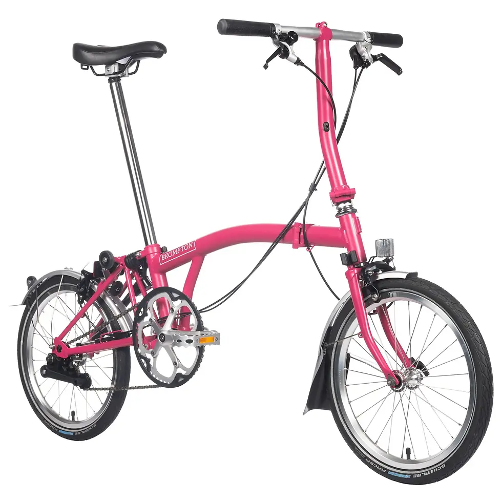 Brompton S6L Folding Bike with Schwalbe Marathon Tyres in Hot Pink